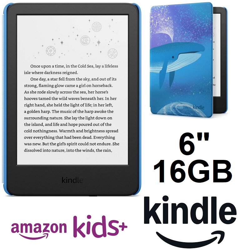 AMAZON KINDLE KID'S (11TH GENERATION) E-READER WITH SPACE WHALE COVER - 16GB - 6" - BLACK (MODEL: 840414634961)