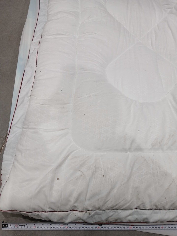 - blue foam under mattress topper - light stains and dirt marks on topper, needs to be washed
