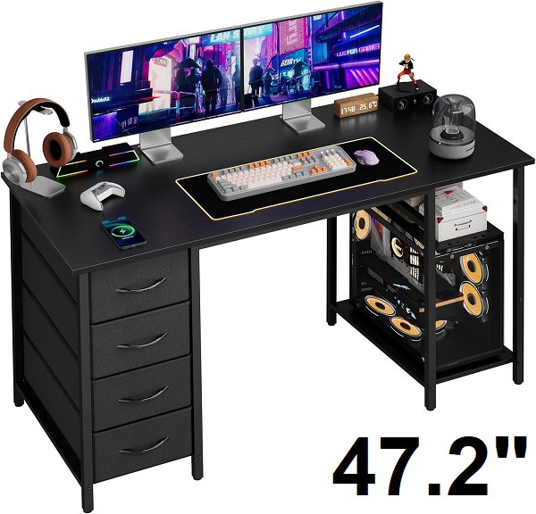 Grandder Computer Gaming Desk with 4 Storage Drawers and CPU Shelves - 47.2" - black