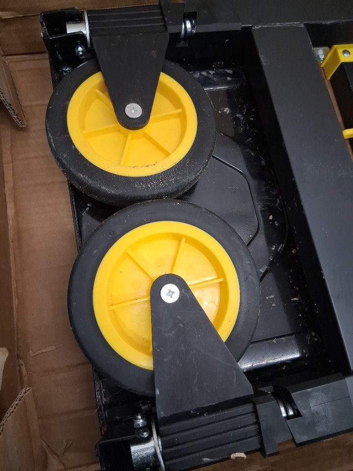 item has some dirt and dust on wheels from previous use please refer to pictures
