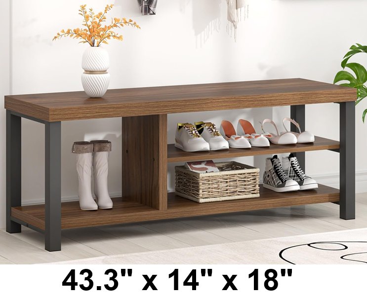foluban modern wood and metal storange bench for entry way or bedroom - 43.3" x 14" x 18" - rustic walnut (model: ‎CA-FBC040102)