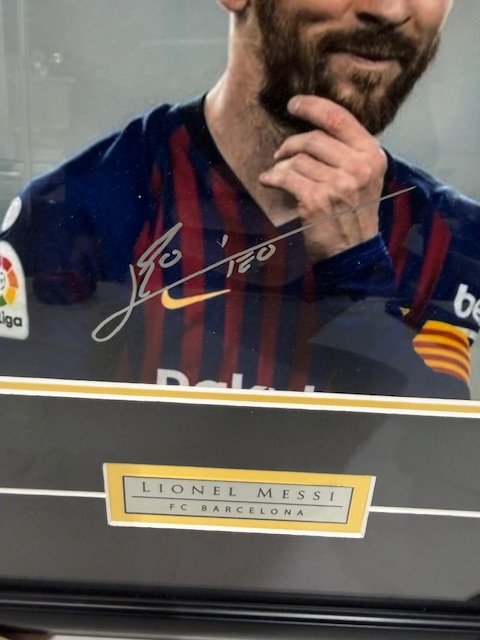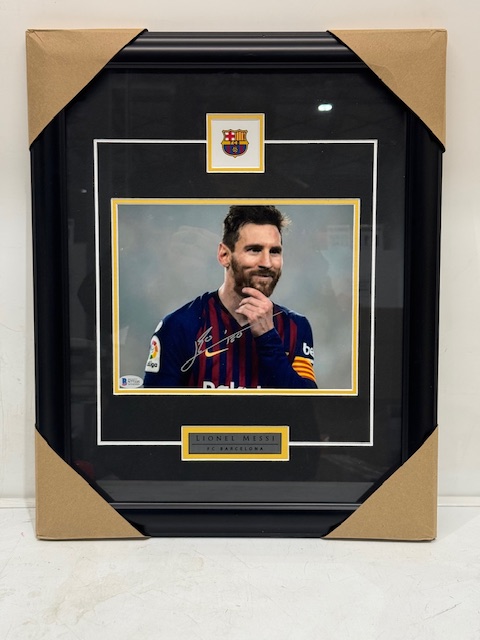 SIGNED LIONEL MESSI FC BARCELONA PICTURE IN 16"X20" FRAME WITH COA HOLOGRAM FROM BECKETT WITNESS