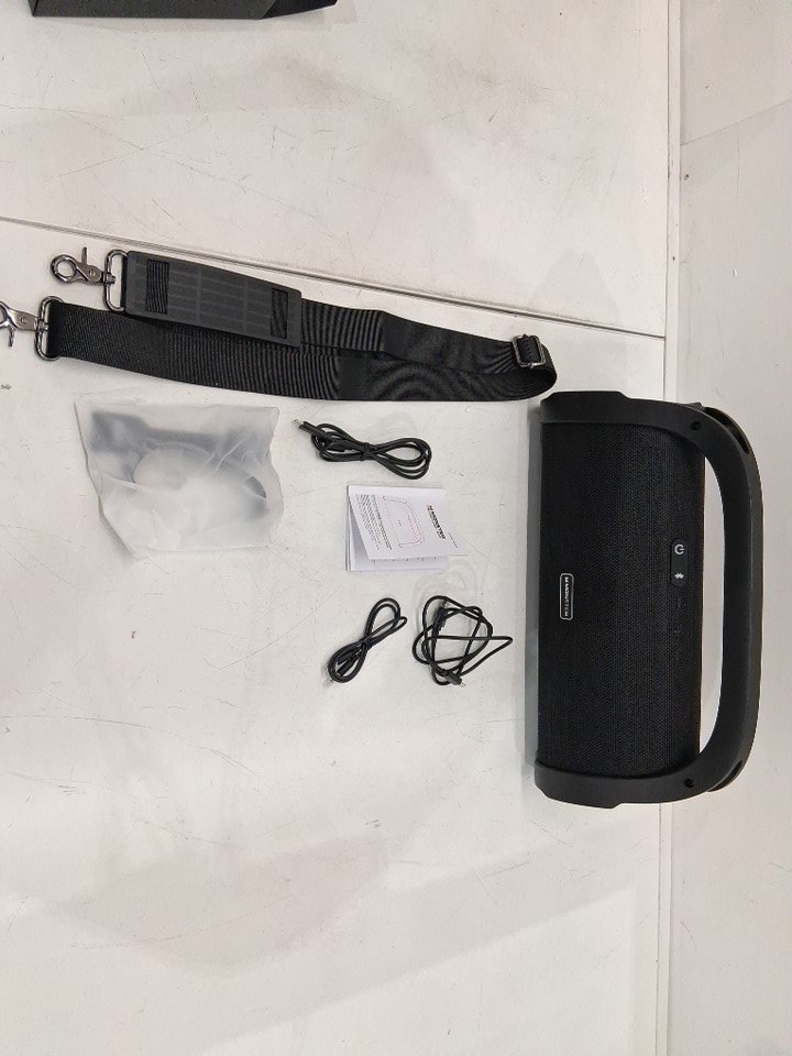 Works great when plugged in. Battery strength unknown (assume it needs to stay plugged in). Light cosmetic scuffs on the sides (see photos). Tested for power & connects to Bluetooth.