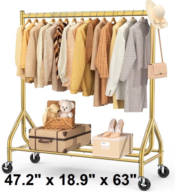 agmak Heavy Duty Adjustable Clothes Garment Rack - 47.2" x 18.9" x 63" - gold (model: ‎UKGRP067)
