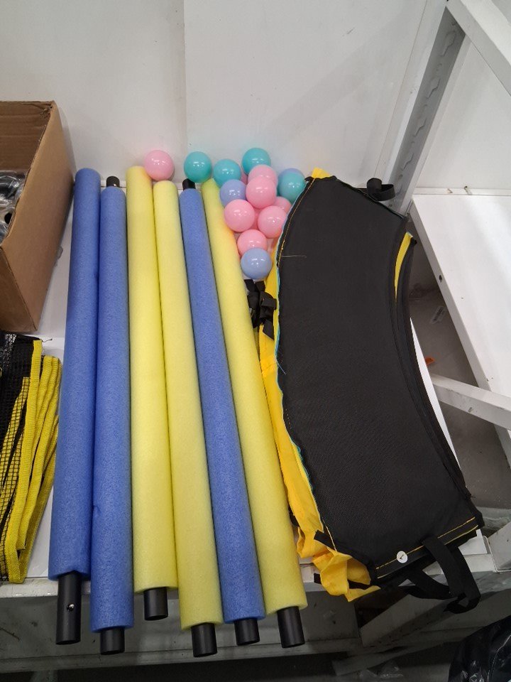 kid's junior edition indoor/outdoor trampoline with protective netting - 5ft x 5ft - yellow/blue (model: lpiw)