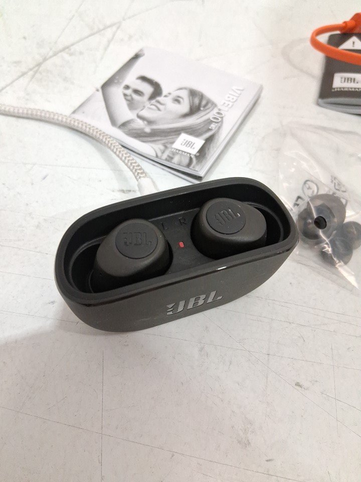 item tested for power only, please fully charge before use, very light debris and scuffs from assumed previous use or testing
