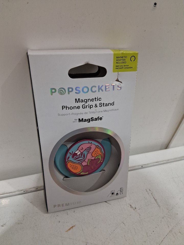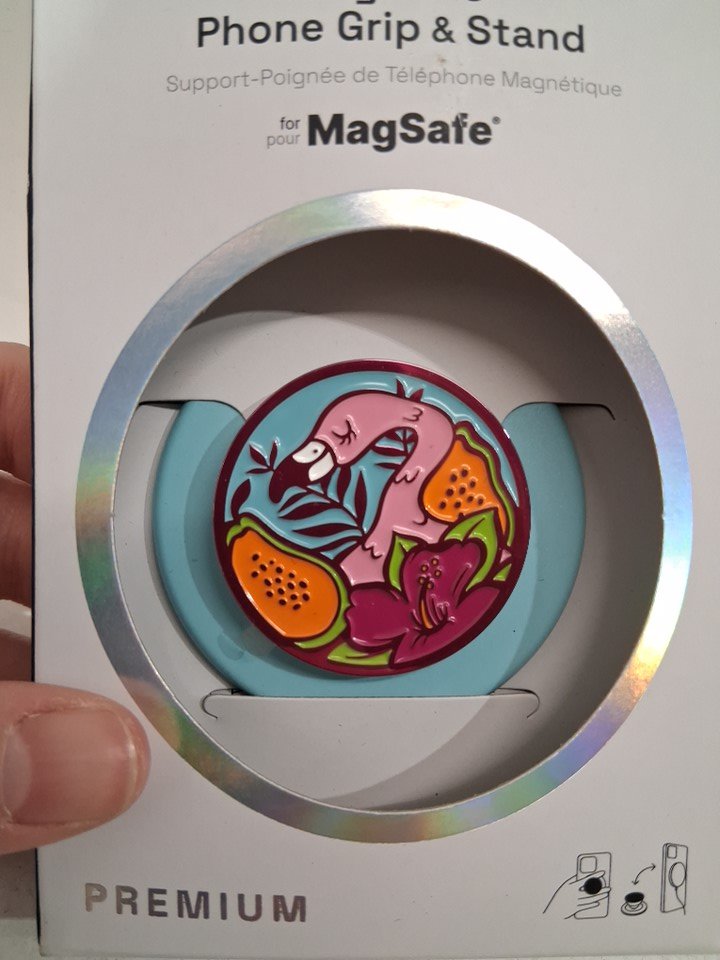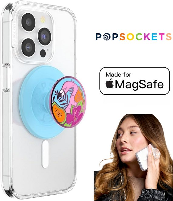 PopSockets enameled flamingo secure hole MagSafe Phone Grip - blue / pink