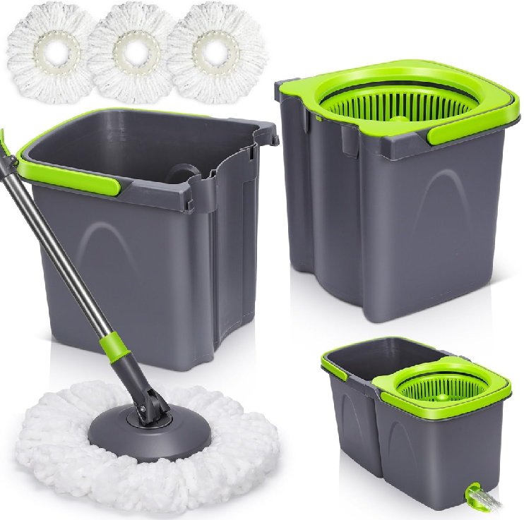 Almcmy Spin Mop & Bucket with Wringer Set - 31" - 50" - grey/green