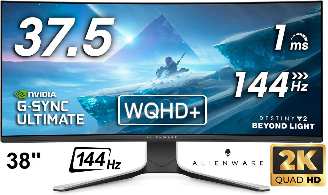 Alienware Ultrawide Curved Gaming Monitor 38" WQHD (3840 x 1600) with 144Hz Refresh Rate, 1ms Response Time, 2300R Curvature, NVIDIA G-SYNC Ultimate, IPS, VESA Display HDR 600, USB, White (model: AW3821DW)