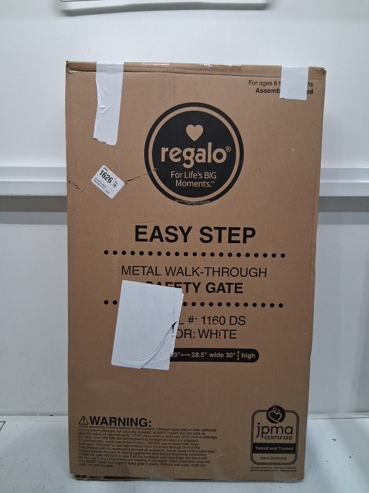 REGALO EASY STEP EXTRA WIDE METAL BABY SAFETY GATE - FITS OPENINGS 29"-38.5" WIDE x 30" HIGH - WHITE (MODEL: 1160DS)