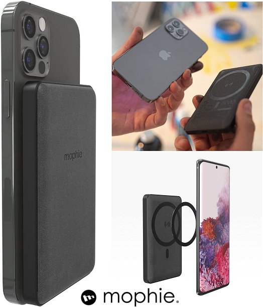 MOPHIE SNAP+ JUICE PACK MINI - WIRELESS PORTABLE MAGNETIC CHARGER COMPATIBLE WITH MAGSAFE AND QI-ENABLED SMARTPHONES - 5000MAH - BLACK (MODEL: 401107911)