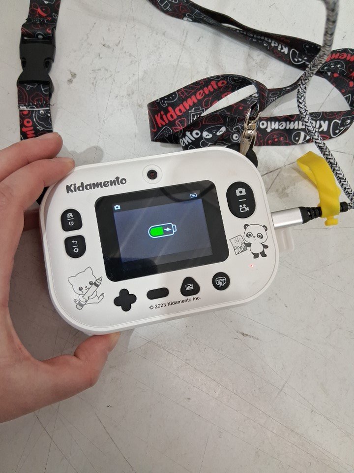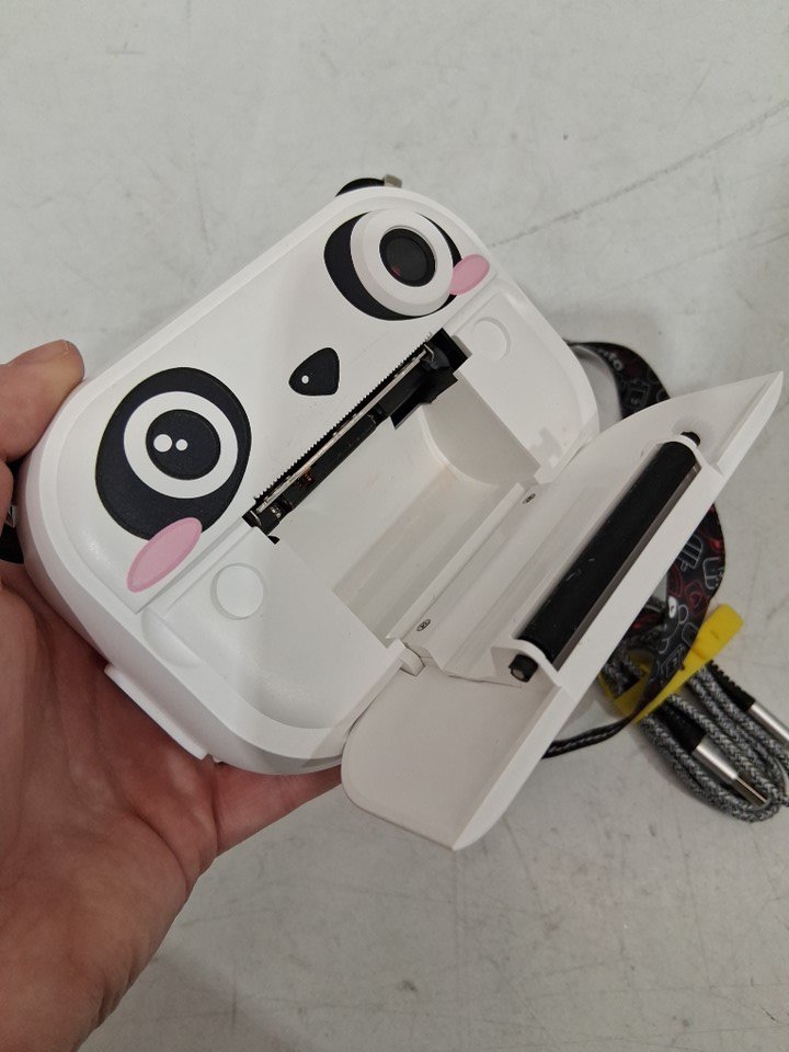 missing print paper, missing power cable was replaced with our own, light scratches on front from shipping, tested for power, please fully charge before use