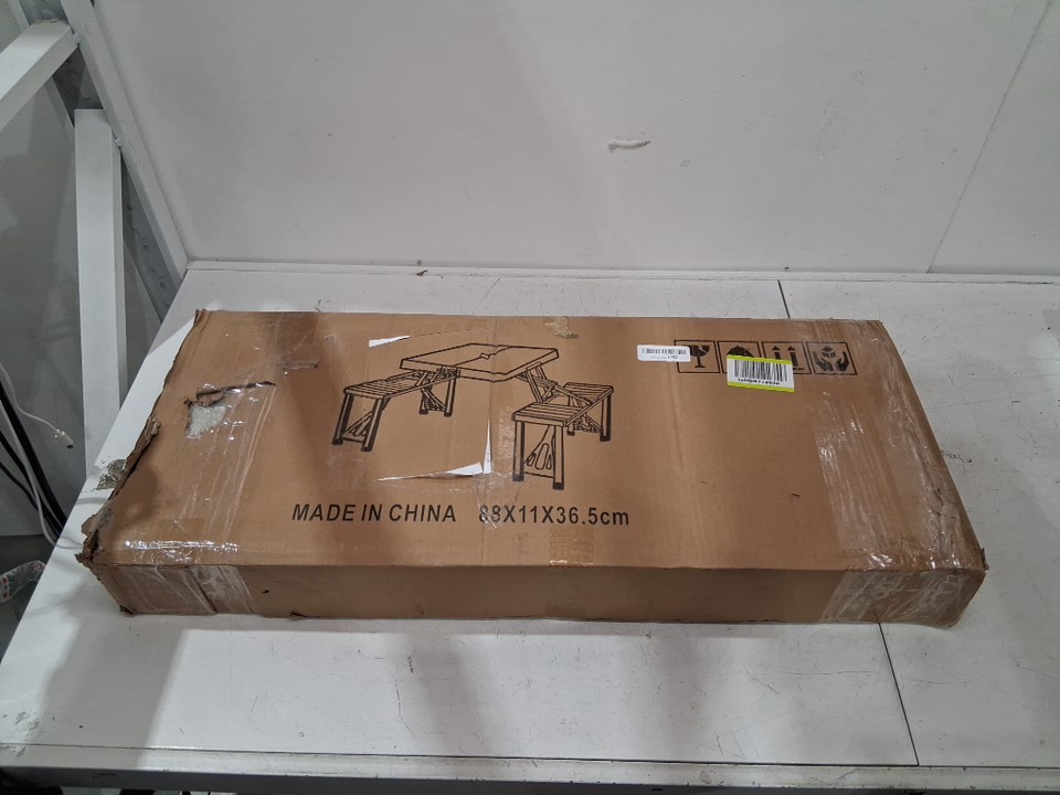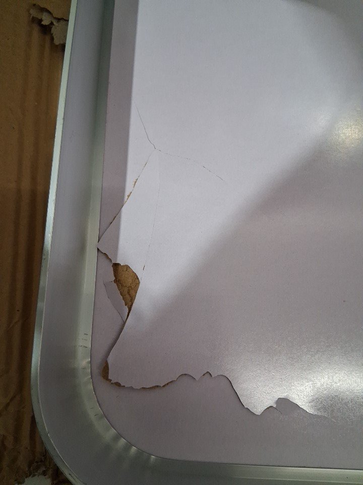 please note that the wood under the top table is damaged due to shipping and now has cracks on it (see photos).