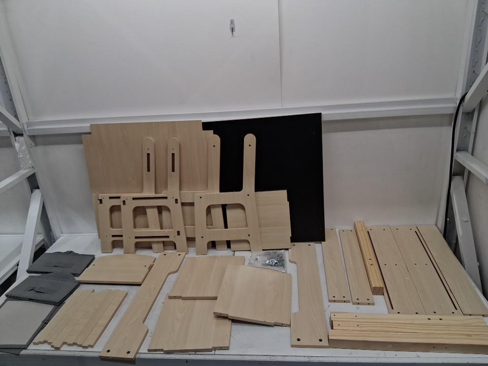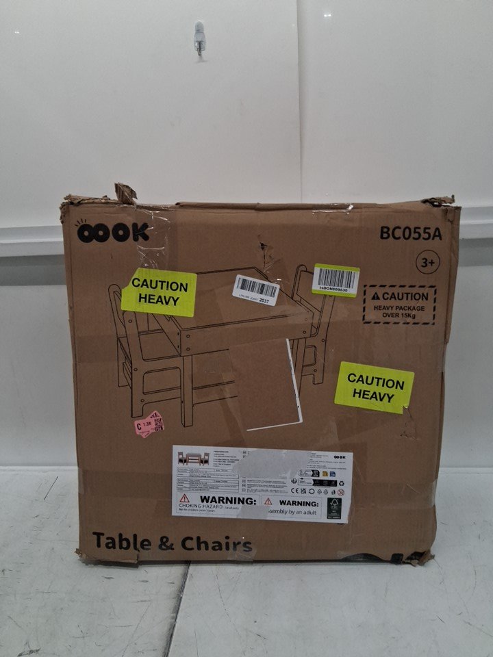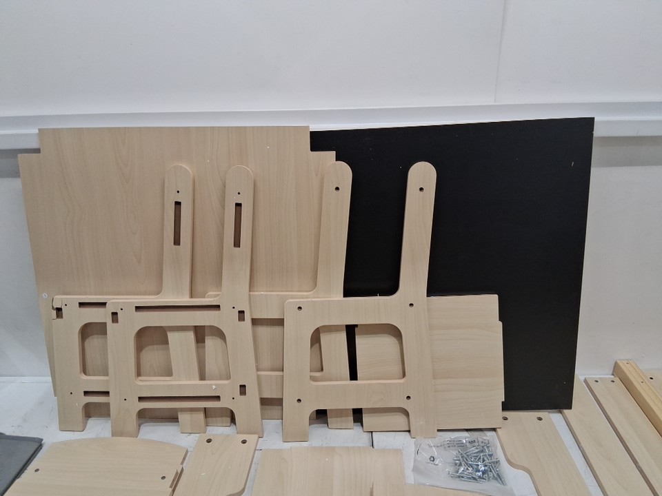 please note the product was discovered to have some damage to one of the chair legs, we believe this could be fixed with some wood glue, please see photos for more details