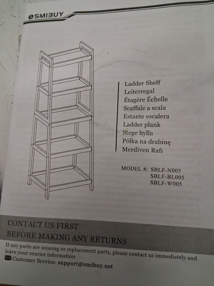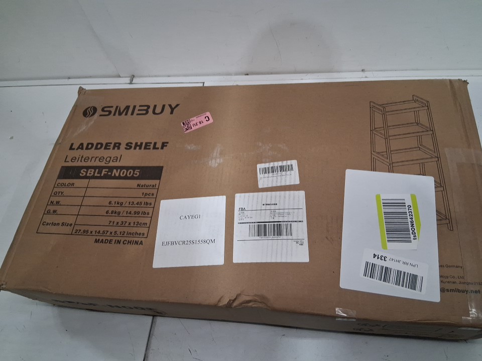 SMIBUY bamboo ladder bookcase 5-tier - 50" x 13.5" x 17" - Natural/beige (model: sblf-n005)