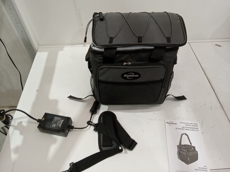 KOOLATRON SOFT BAG ICELESS PORTABLE TRAVEL COOLER BAG WITH SHOULDER STRAP- 12V - 13L/14QT - BLACK/GREY (MODEL: D13)