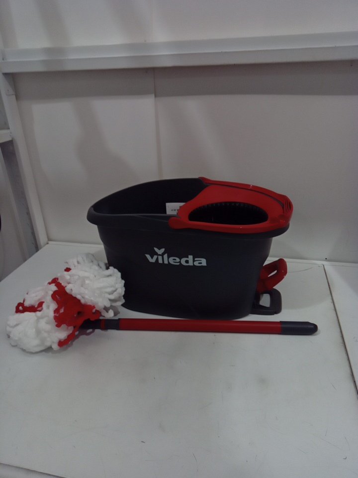 VILEDA EASYWRING POWER SPIN BUCKET SYSTEM WITH EXTENDABLE POLE & extra mop heads - 22" to 48" - GREY/RED (MODEL: 172880)