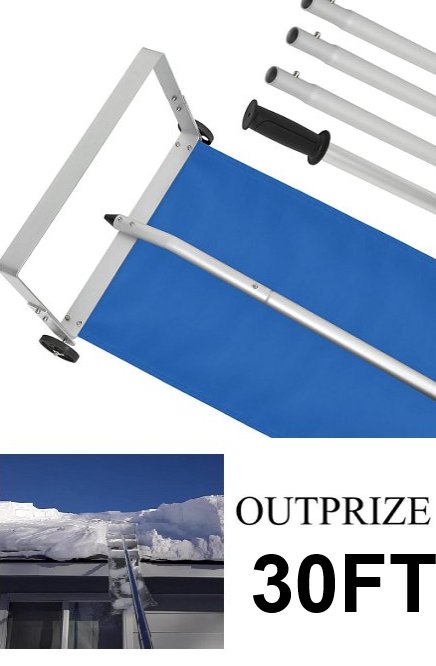 OUTPRIZE Aluminum Detachable Snow Roof Rake Wheels and Oxford Slide - 30ft - silver/blue - (model:sr-alu-30ft)