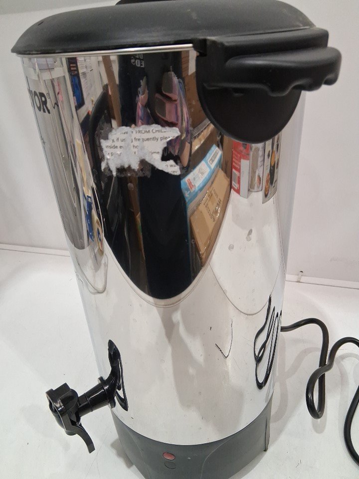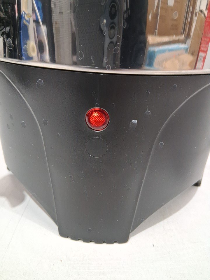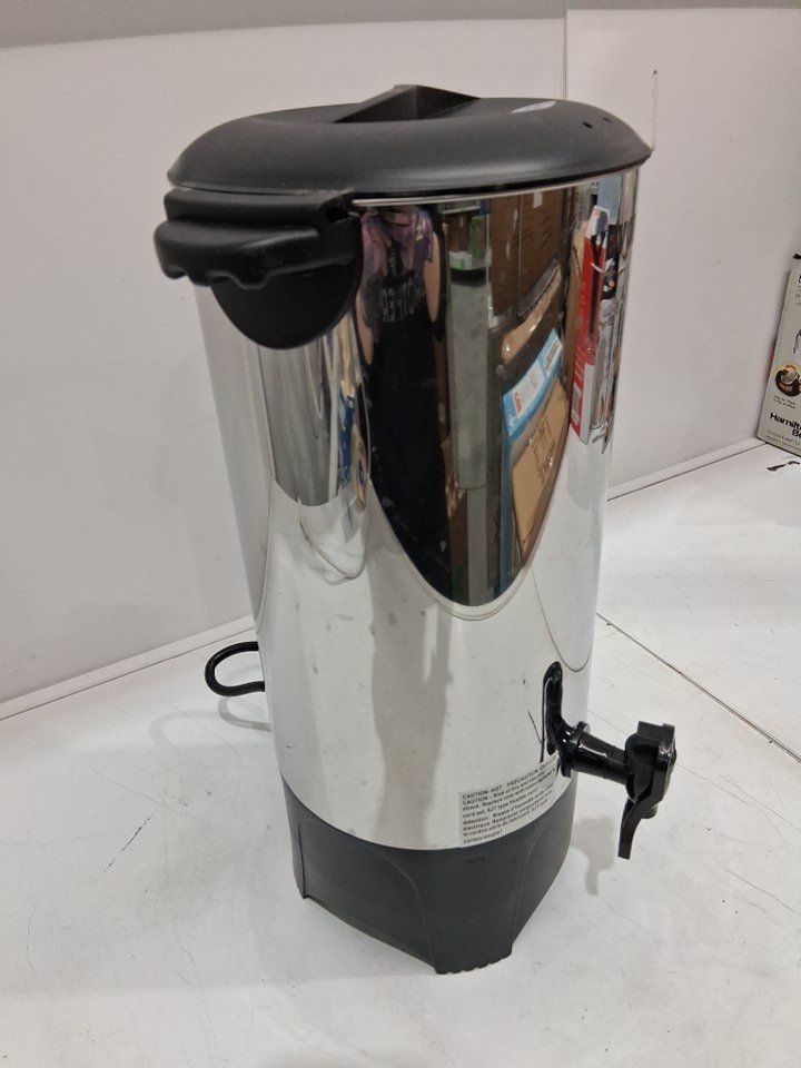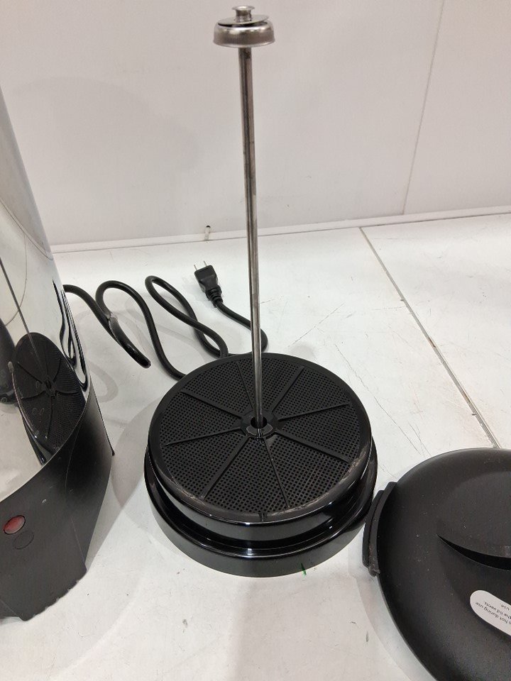 Item shows signs of light use. Some smudges and sticker residue on exterior of unit, as well as some residual coffee/water on lid and interior (See photos). Tested for power.