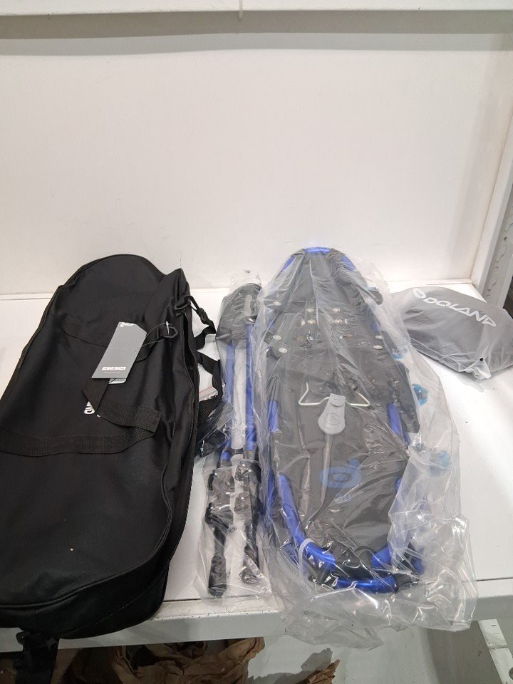 Unisex Odoland 4-IN-1 Lightweight Snow Shoes Set with Trekking Poles, Waterproof Snow Leg Gaiters and Carrying Tote - 30" - Black/blue (Model: OD0321L)