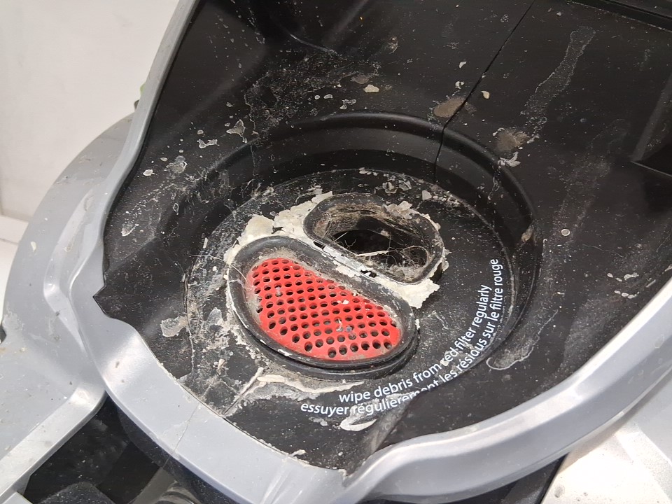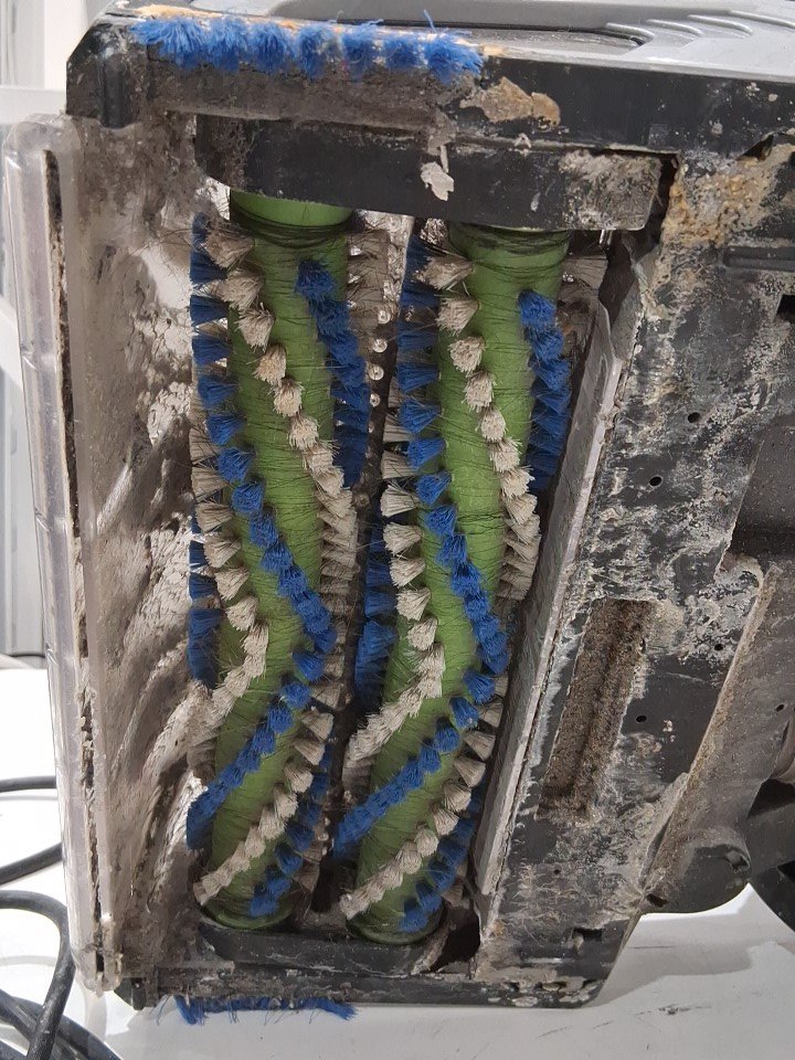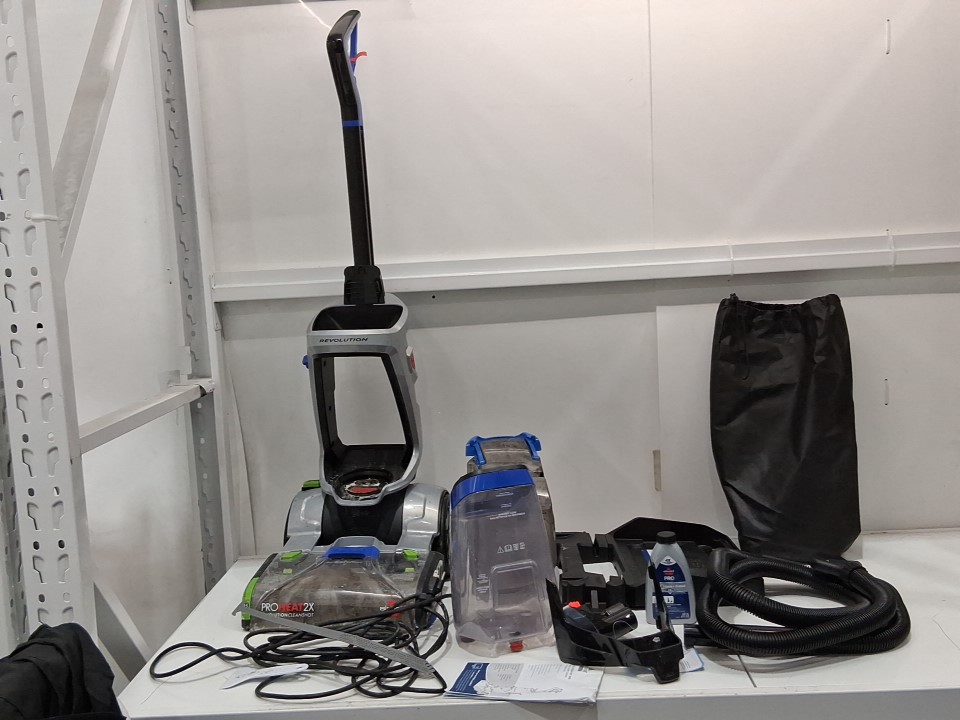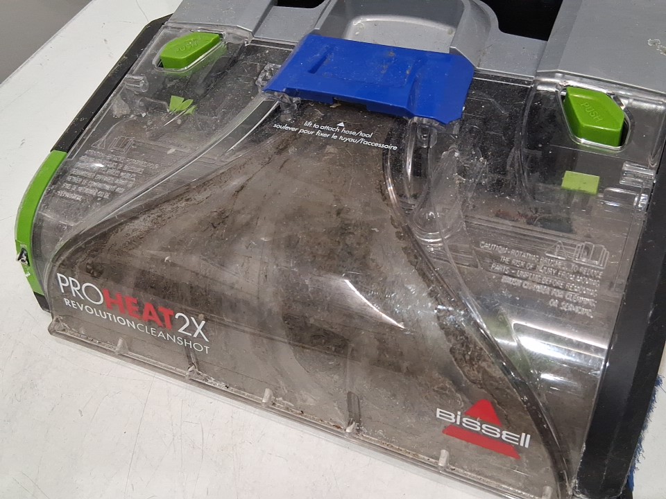 **Tested for power and suction.** Item has significant dirt/debris build-up in the main roller/tubing/dirty water reservoir, markings on the rinse & storage tray and on the roller brush cover as well as along the exterior from previous use; item arrived with a full unopened bottle of cleaning solution, see photos.