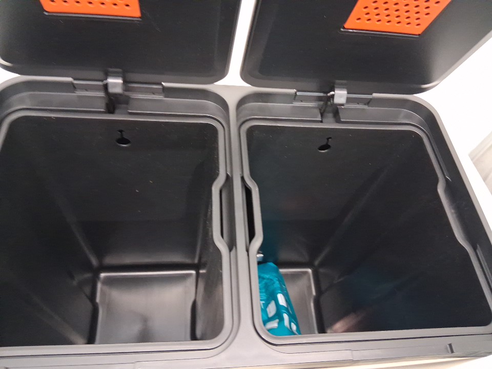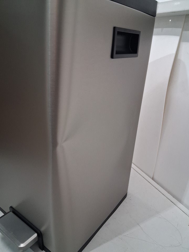 right side of trash can 2 dents in it, and back has white scuffs/scratches