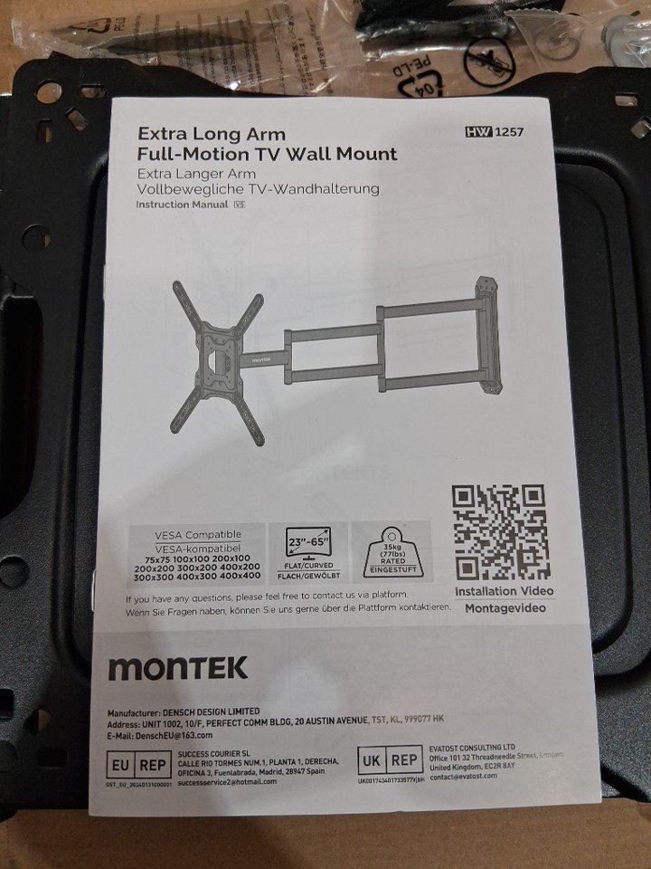 monTEK Full Motion TV Wall Mount for 23–65 Inch Flat & Curved TVs - HOLDS up to 77lbs - black (model: HW1257)