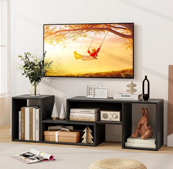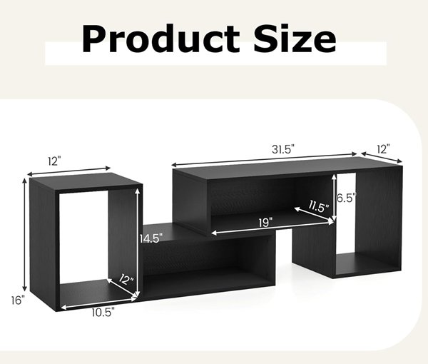 ifanny modern wooden combination tv stand - 43.5" - 62.5" x 12" x 16" - black (Model : hv10622)