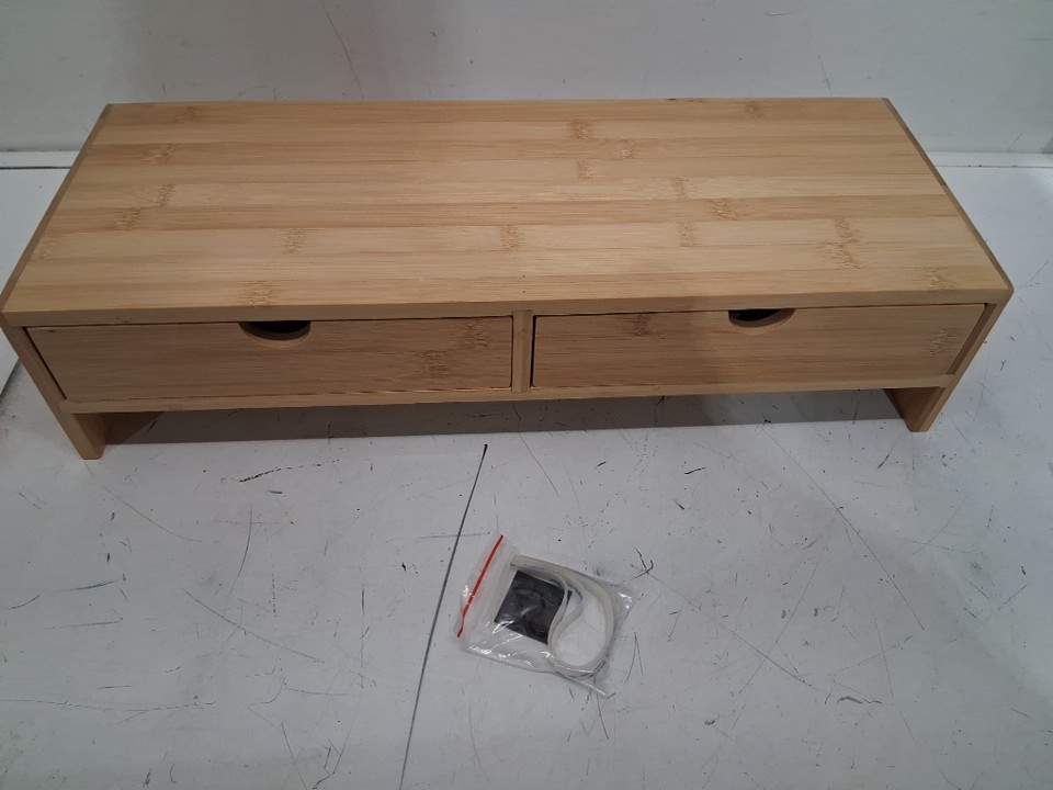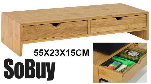 SOBUY BAMBOO COMPUTER MONITOR STAND AND ORGANIZER W/ 2 DRAWERS (MODEL: FRG198-N)