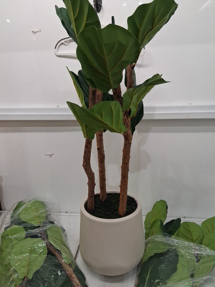 artificial fiddle leaf fig tree with Planter pot - 6ft - brown/green/white (model: yj-006)