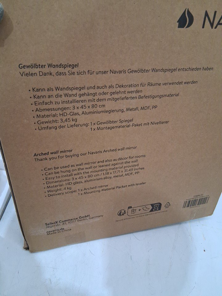 Navaris Arched Wall Mirror - 17.7" x 31.5" - Gold - (Model: 55894.21)