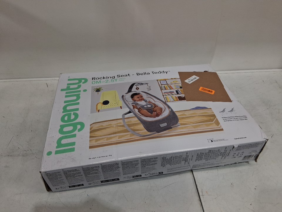 INGENUITY BOUTIQUE COLLECTION ROCKING SEAT Bella Teddy FOR BABY - 0 Months to 2.5 Years - WHITE/GREY (MODEL: 10986-EES)