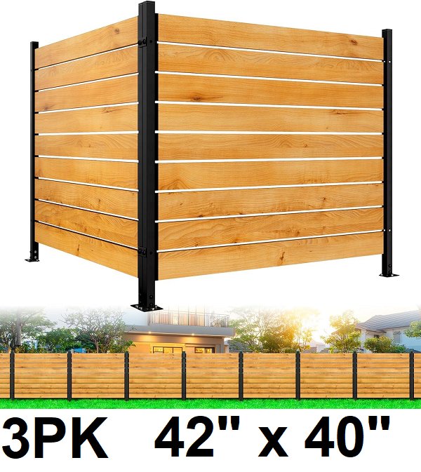 3pk No Dig Wooden Privacy Fence Screen - 40" x 42" - natural wood/black