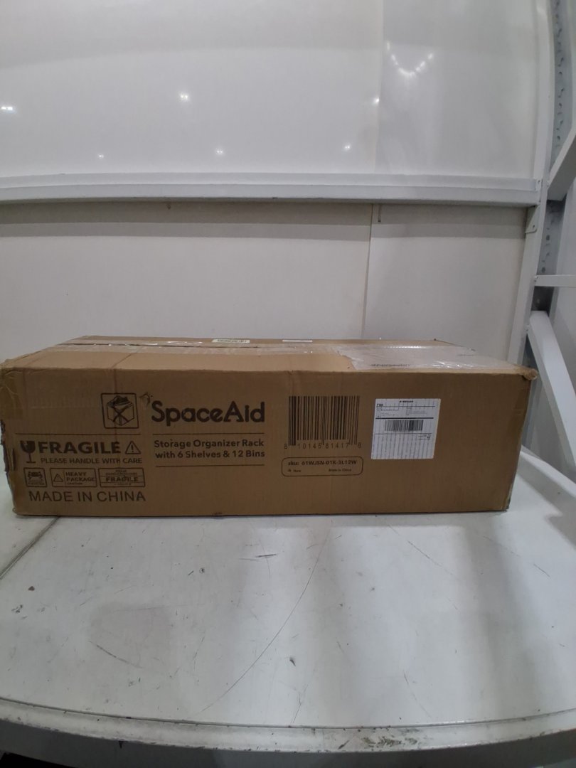 SpaceAid Storage Organizer with 6 Shelves and 12 Bins - 52.3" x 13.6" x 31.5"- wood/white (model:61wjsn-01k-3l12w)