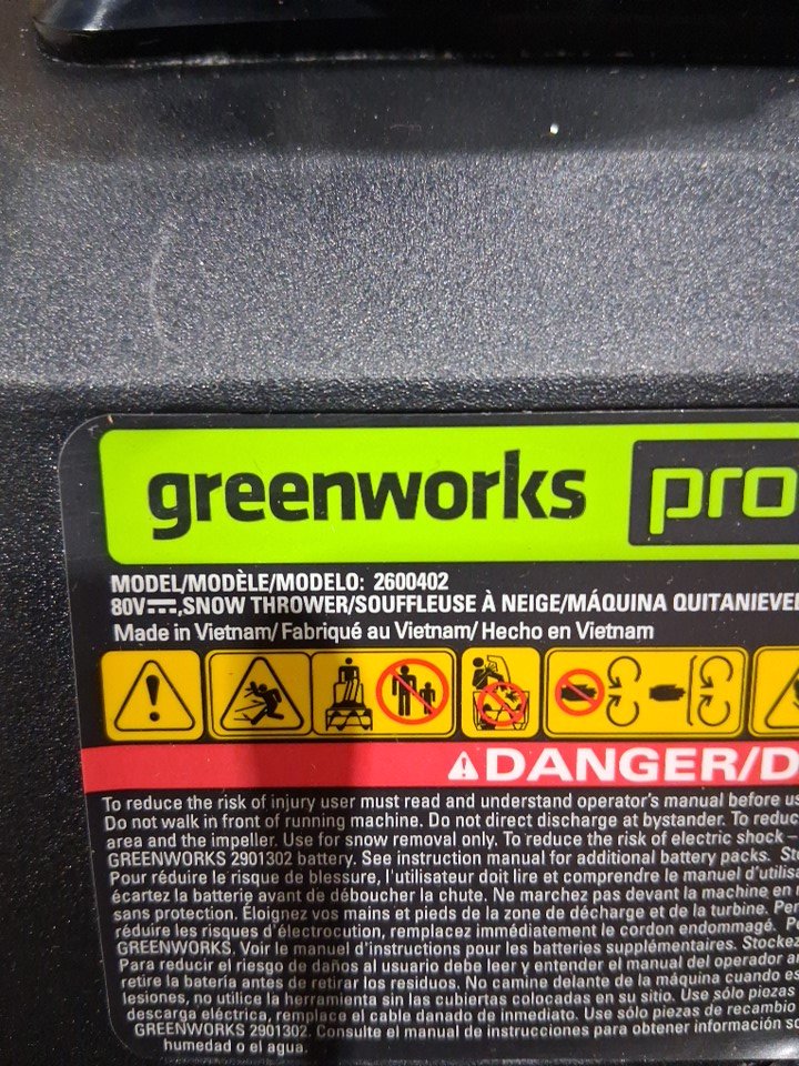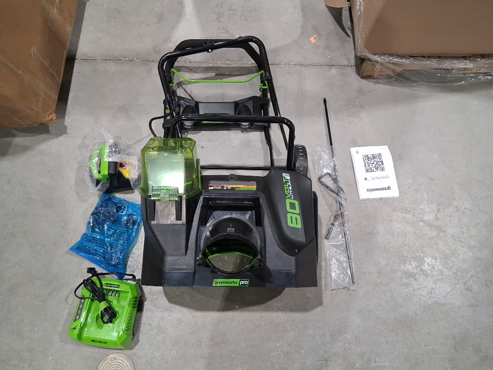 GreenWorks Pro 80V 20-Inch Cordless Snow Thrower WITH CHARGER AND ADAPTOR - green - (model:2600402)