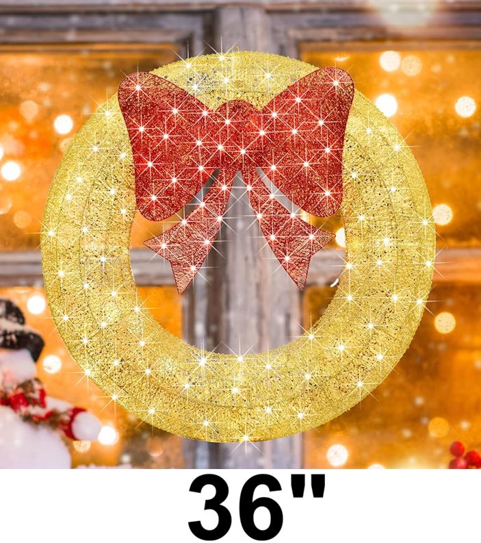 Carivia Front Door Christmas Wreath - 36" - 91 lights - Gold - (Model: ‎JYD25023)