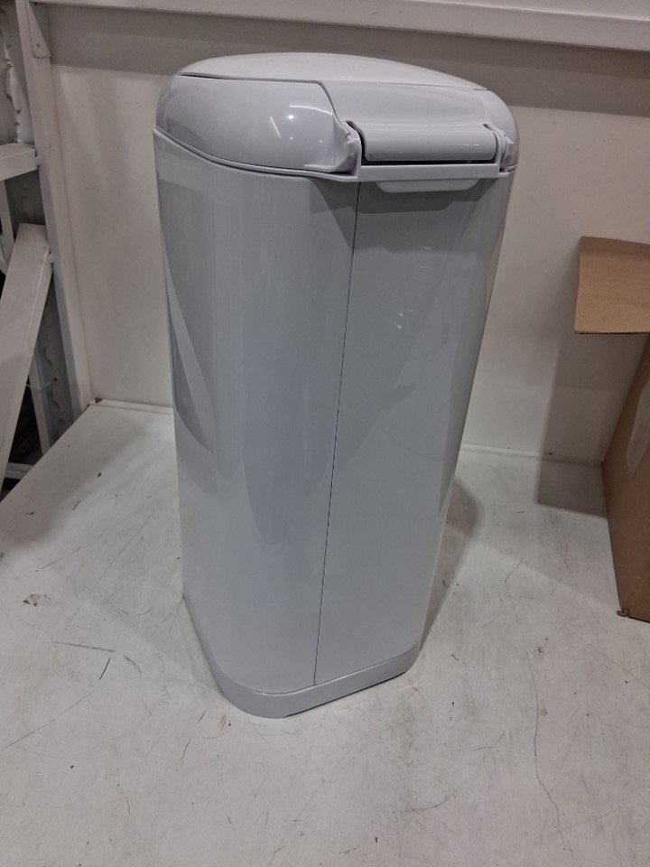 there is some type of pebbles inside the genie. marks on the outer item. missing refill bags. when the lid rises up it gets stuck and you have to push the peddle in order for the lid to go down.