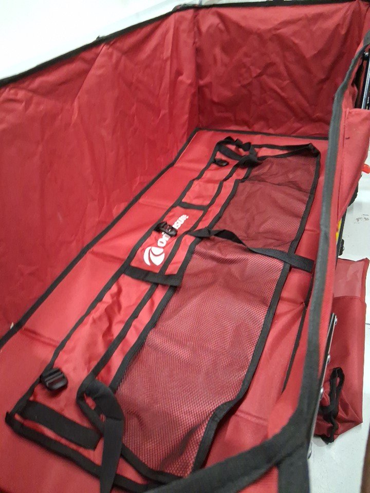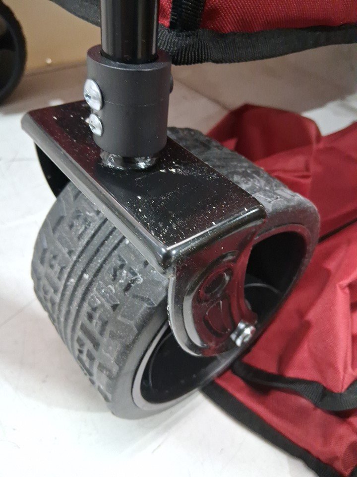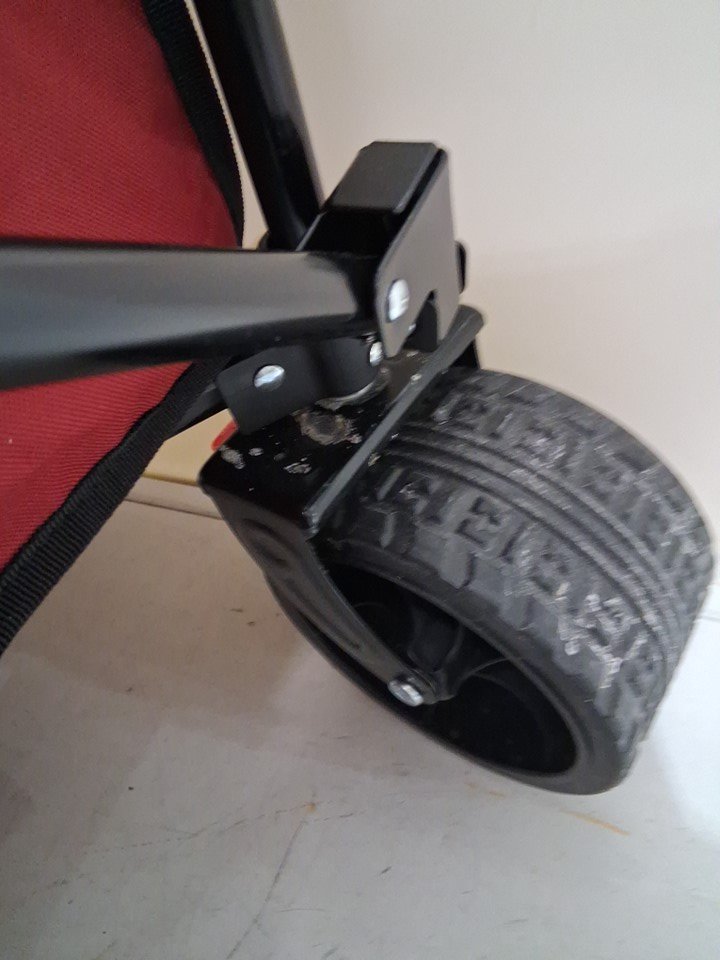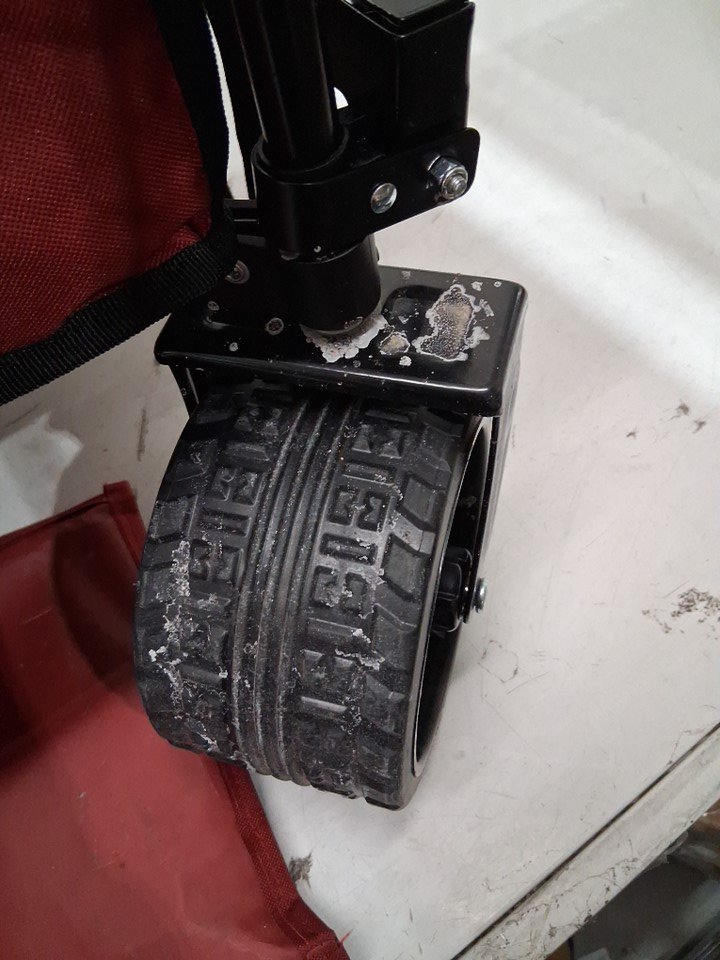 item has light snow/salt residue on wheels and some markings on fabric/ seat pad from previous use