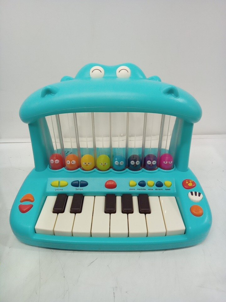 B. toys Hippo Pop Musical Keyboard Interactive Piano Toy with Lights, Sounds & Bouncing Balls – Ages 1+ - blue