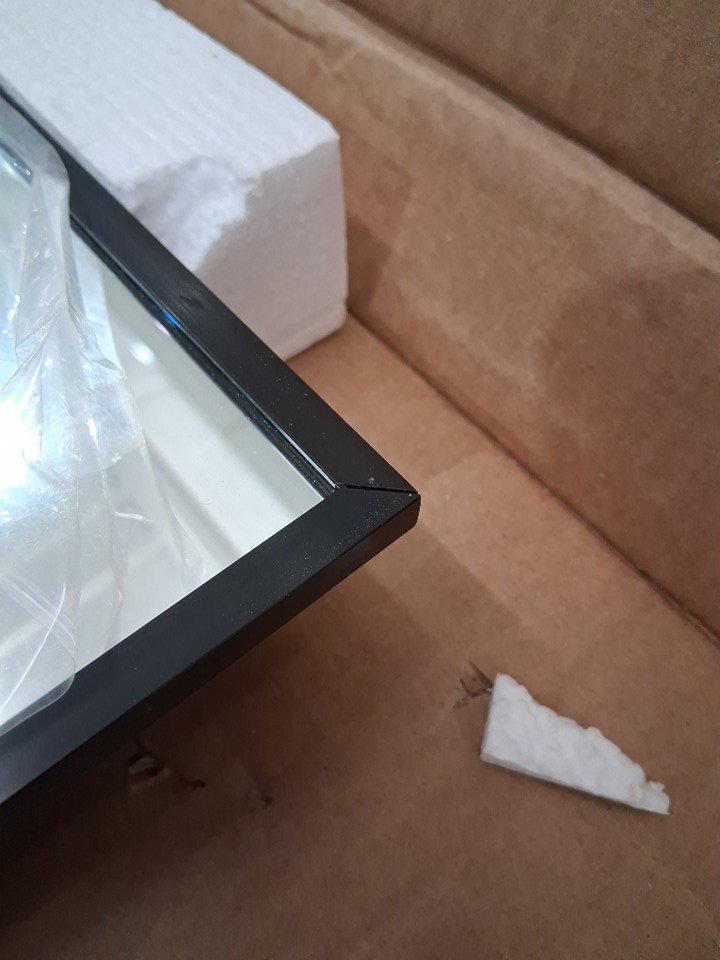 Please note that this is some damage at the corners of the frame likely from being packaged in an slightly oversized box - 24" x 36" mirror packaged in a 24" x 40" box (see photos) Tested for power