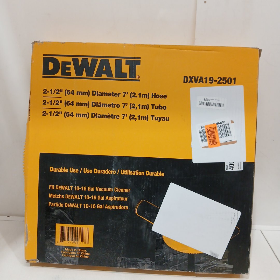 Dewalt Durable Vacuum Hose For Select Dewalt Wet/Dry Vacuums - 2.5" x 7FT - Yellow/Black (Model: DXVA19-2501)