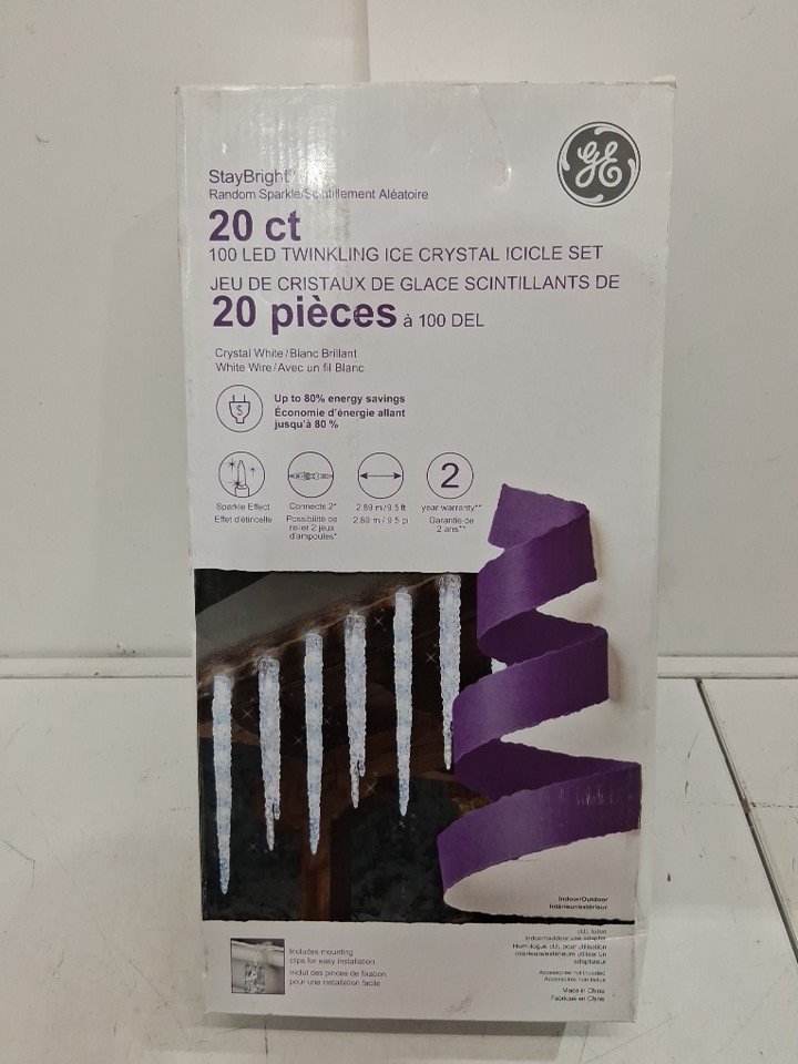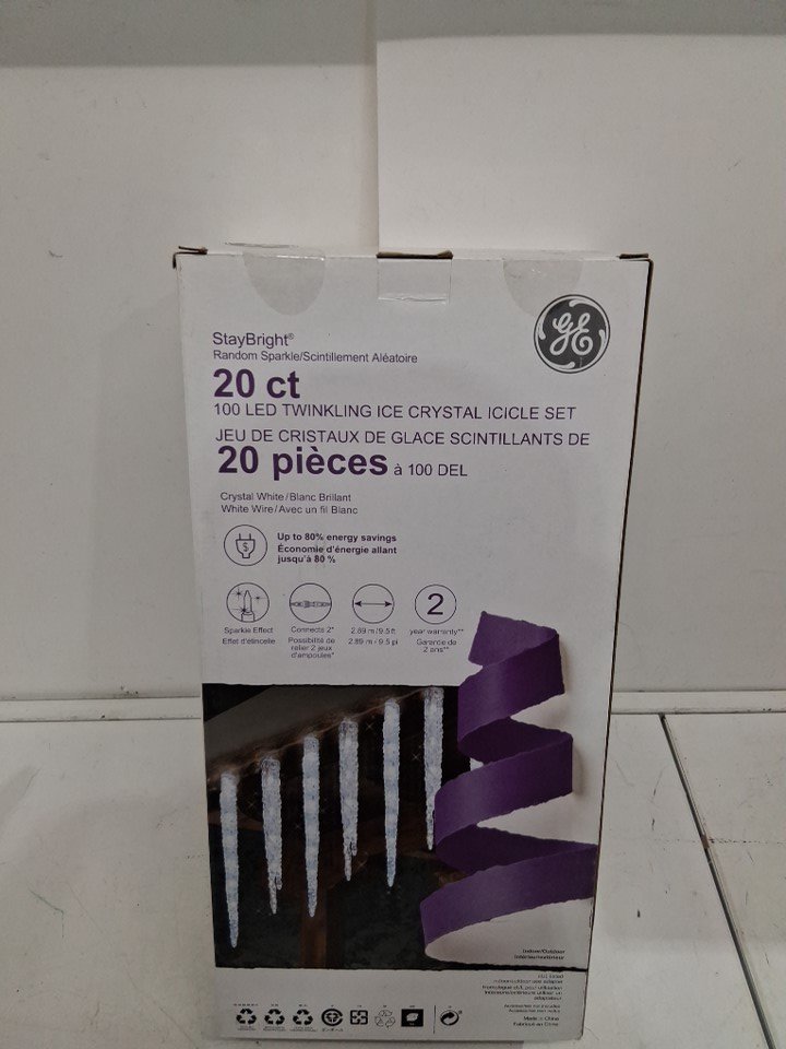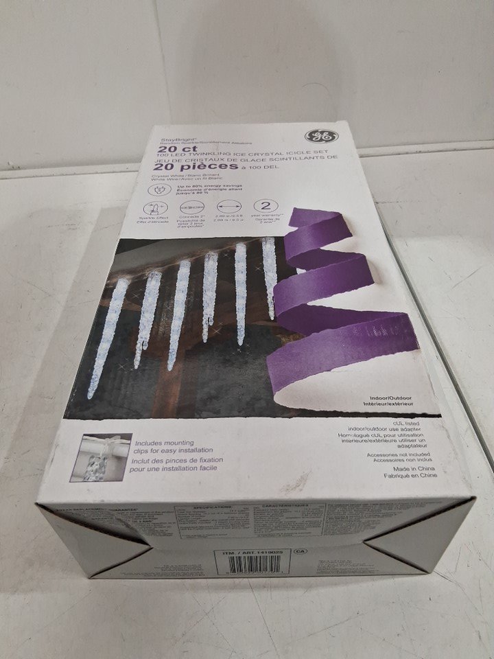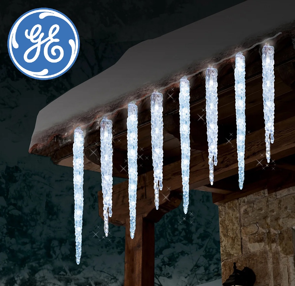 General Electric STAYBRIGHT Twinkling Icicle STRING LIGHT Set for Indoor/Outdoor Use - 9.5ft - crystal white/Sparkle Effect (MODEL: 1419025)