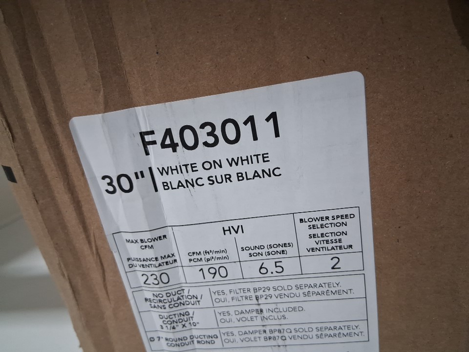 broan nutone convertible range hood - 30" - 2 speed - 120v - 75w - white (model: ‎F403011)