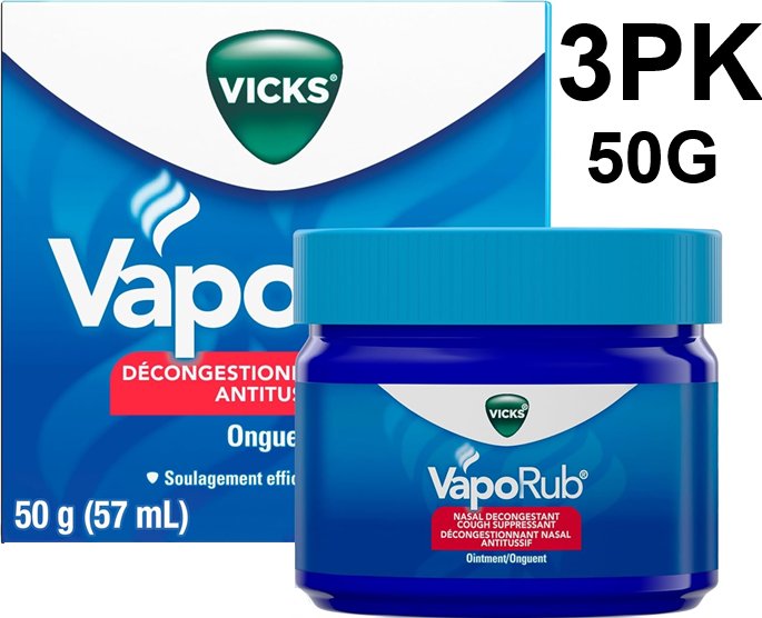 3PK Vicks VapoRub Nasal Decongestant Cough Suppressant - 50G EACH