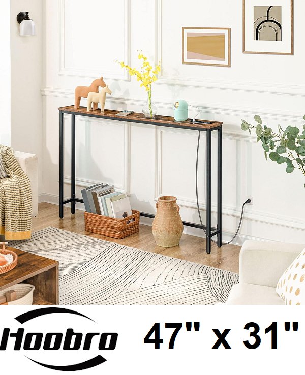 HOOBRO Narrow Console Table with Power Outlets and USB Ports -47" X 31" - BROWN/BLACK (MODEL:BF15XG01G1)