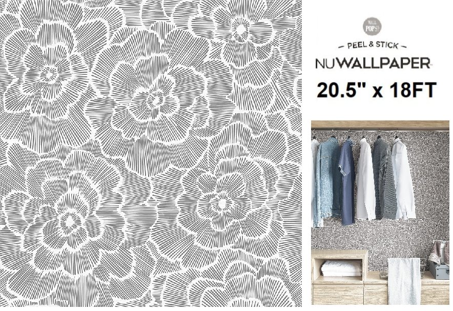 WALL POPS! NUWALLPAPER PEEL & STICK multi-use decorative adhesive WALL PAPER - 20.5" x 18FT - Charcoal Saraya (style: nus4047)
