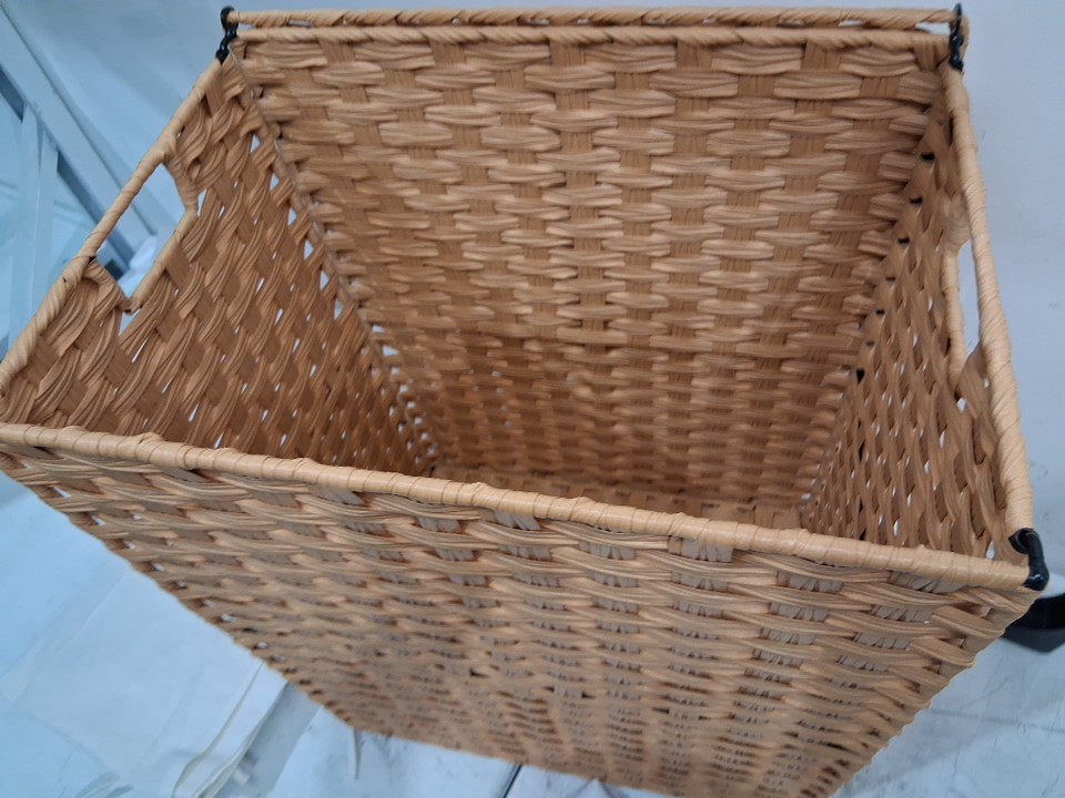 Greenstell Synthetic Rattan Laundry Hamper with Lid with 2 Removable Liner Bags - 110L - 99LBS CAP - LIGHT WOOD/WHITE (MODEL: LH005-V2-E)