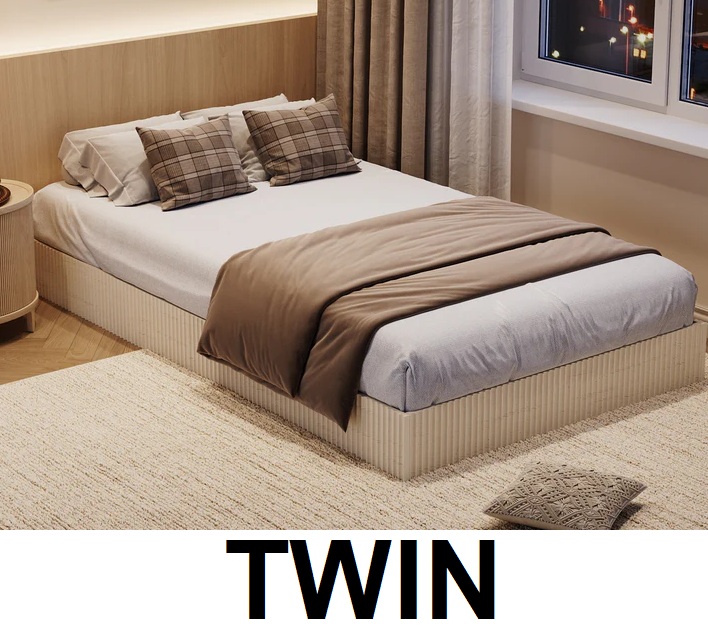 Garvee Bed Frame Wood Platform Bed Fluted Design Low Profile - twin - Cream (model: phk_36cc6bjd)