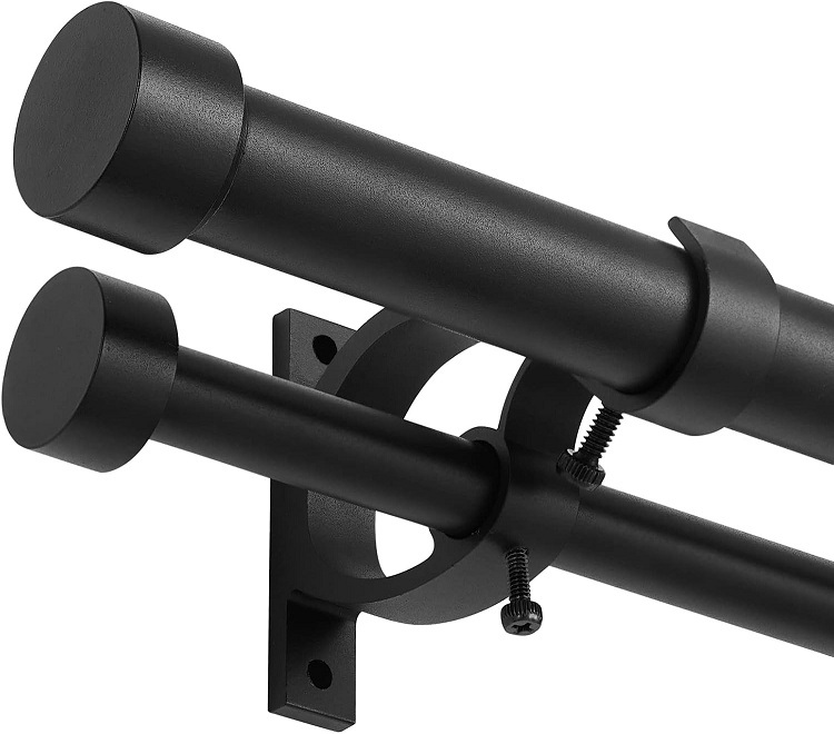 Lwiiom Double Blackout Curtain Rods - 36"-72" - Matte Black (model: lw-317)