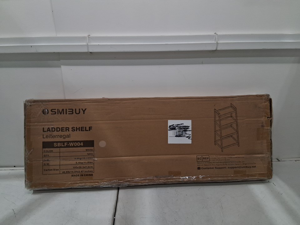 smibuy Bamboo Ladder shelf unit 4 tier - 39" - white (model:SBLF-w004)